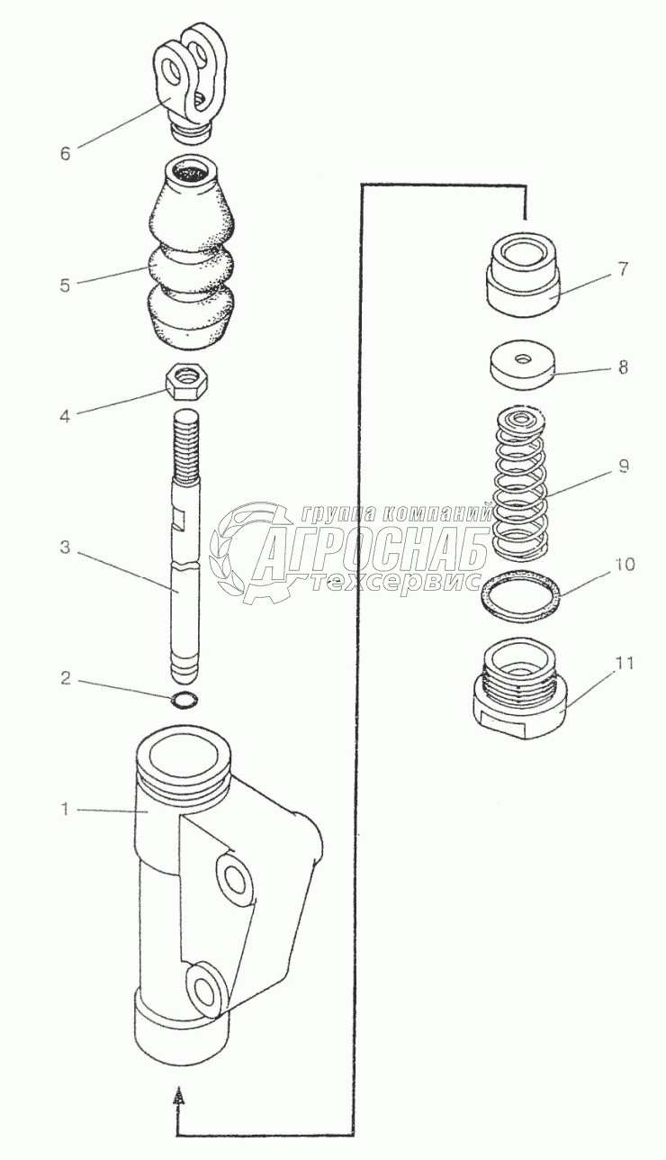 Каталог запасных частей к технике: МТЗ-3522. Цилиндр главный 1221В-1602610