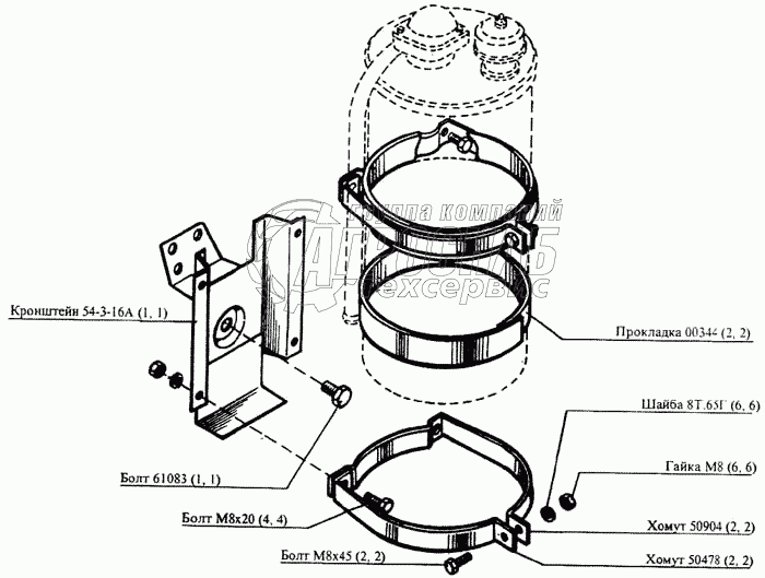 Каталог запасных частей к технике: РСМ CK-5М-1 «Нива». Крепление гидробака