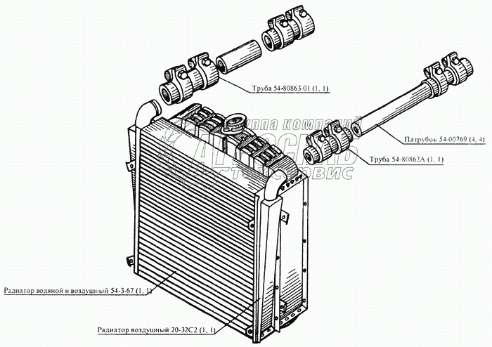 Каталог запасных частей к технике: РСМ CK-5М-1 «Нива». Установка воздушного радиатора