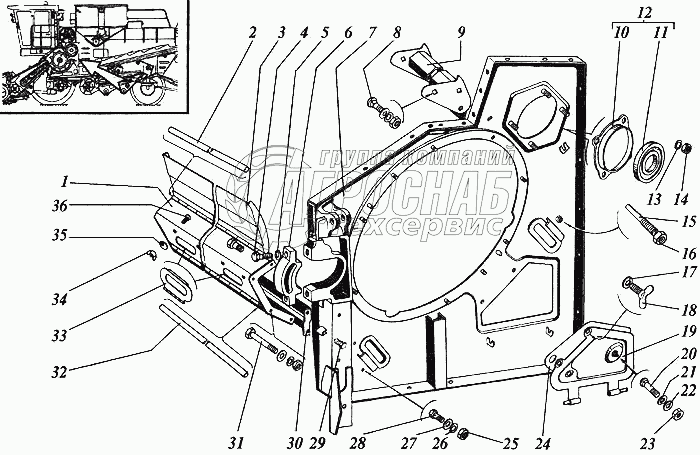 Каталог запасных частей к технике: РСМ Дон 1200. Панель левая передней секции молотилки