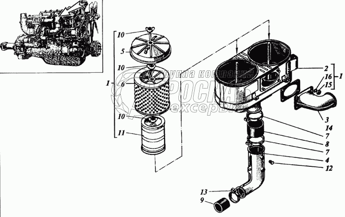 Каталог запасных частей к технике: РСМ Дон 1500Б. Воздухоочиститель