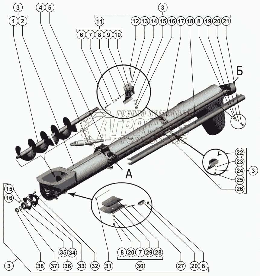 Каталог запасных частей к технике: РСМ-101 "Вектор". Шнек выгрузной