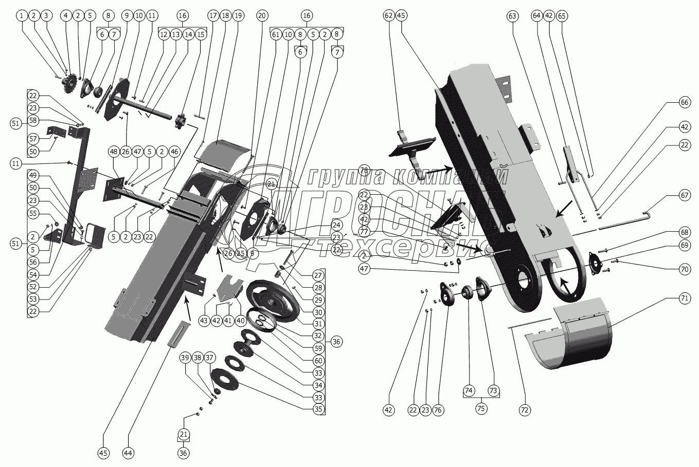 Каталог запасных частей к технике: РСМ-101 "Вектор" (вариант). Элеватор колосовой