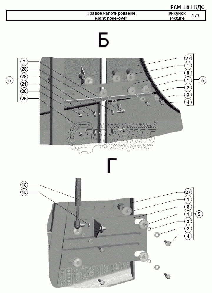 Каталог запасных частей к технике: РСМ-181 "Torum-740". Правое капотирование