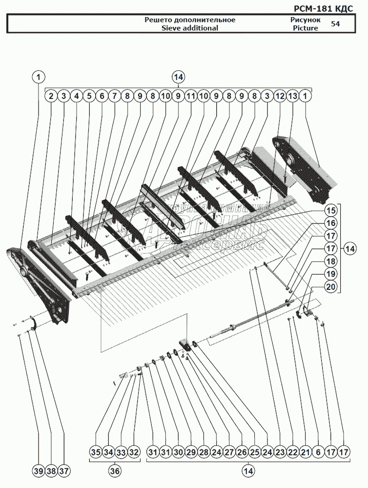 Каталог запасных частей к технике: РСМ-181 "Torum-740". Решето дополнительное