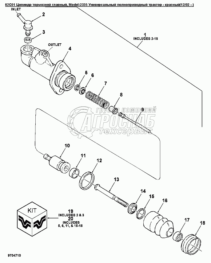 Каталог запасных частей к технике: Versatile серии 2000. 02C01 Цилиндр тормозной главный