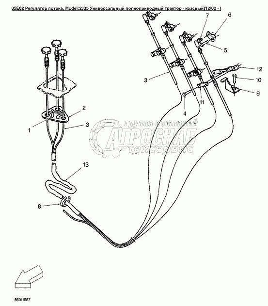 | 3 | 86012110 | Трос регулятора расхода жидкости распределителя | Под заказ | - | |||||