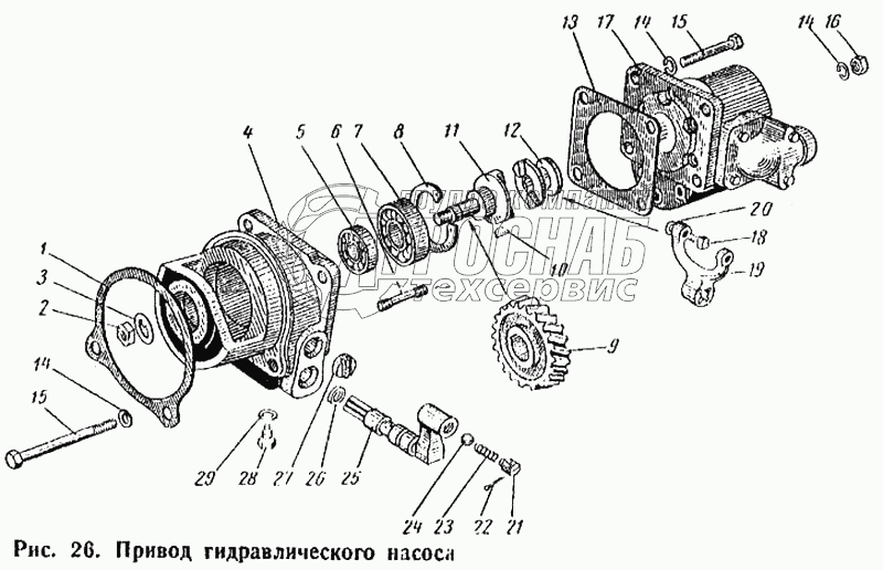Каталог запасных частей к технике: ВгТЗ ДТ-75М. Привод гидравлического насоса
