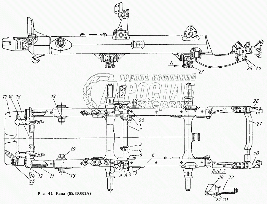 Каталог запасных частей к технике: ВгТЗ ДТ-75М. Рама (85.30.003А)