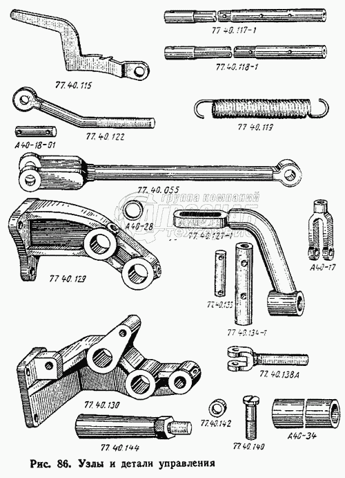 | 17 | 77.40.129 | Кронштейн управления левый | Под заказ | - | |||||