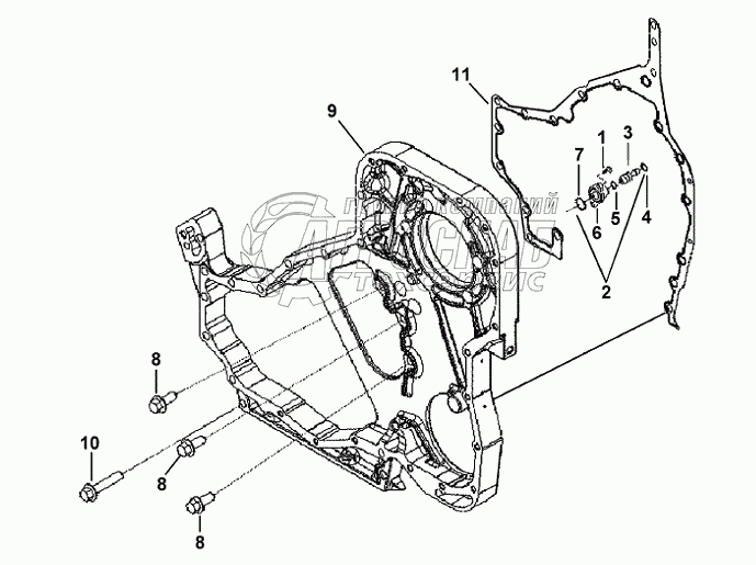Каталог запасных частей к технике: Cummins L375-20. Корпус распределительных шестерен