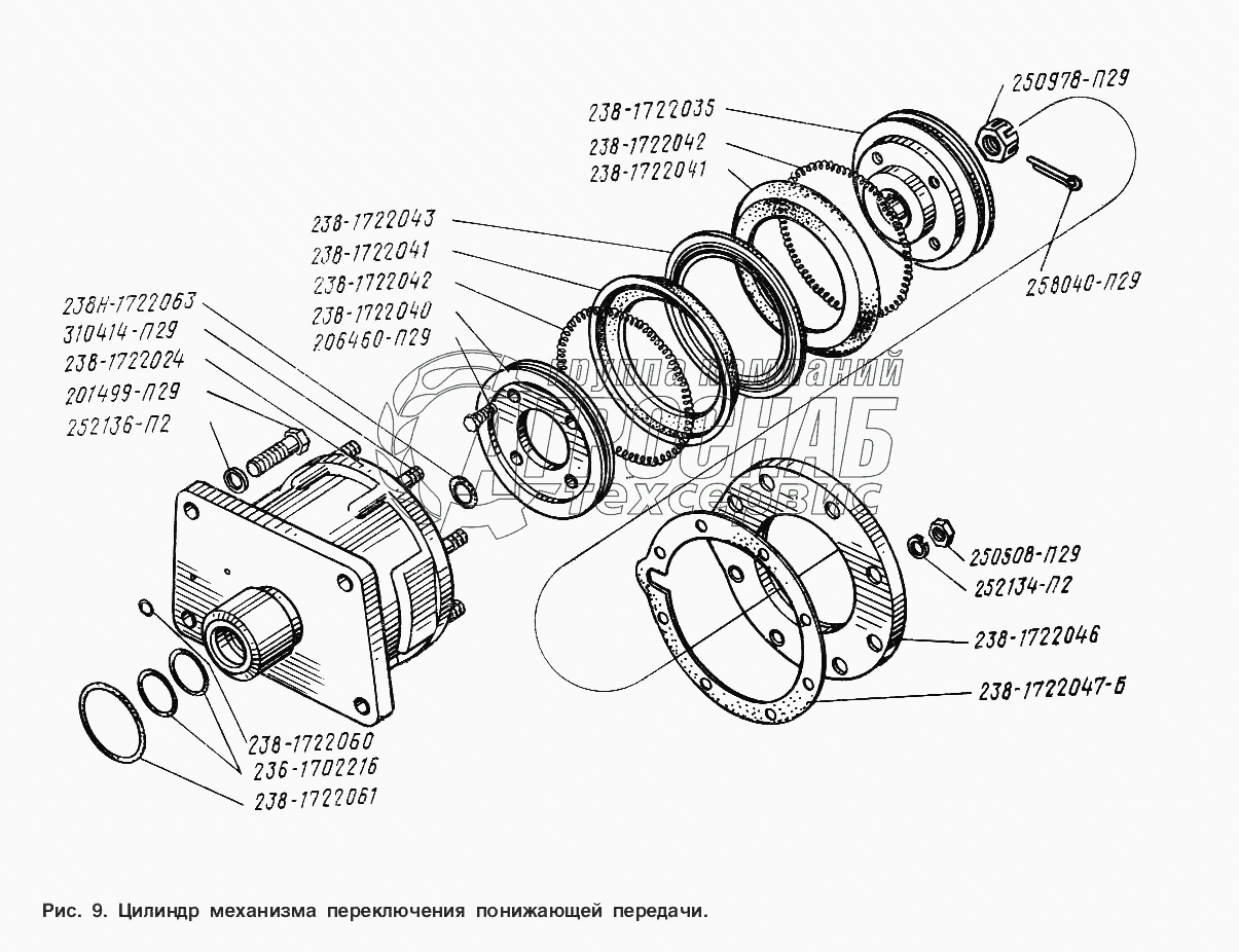 Каталог запасных частей к технике: ЯМЗ-238 Н. Цилиндр механизма переключения понижающей передачи