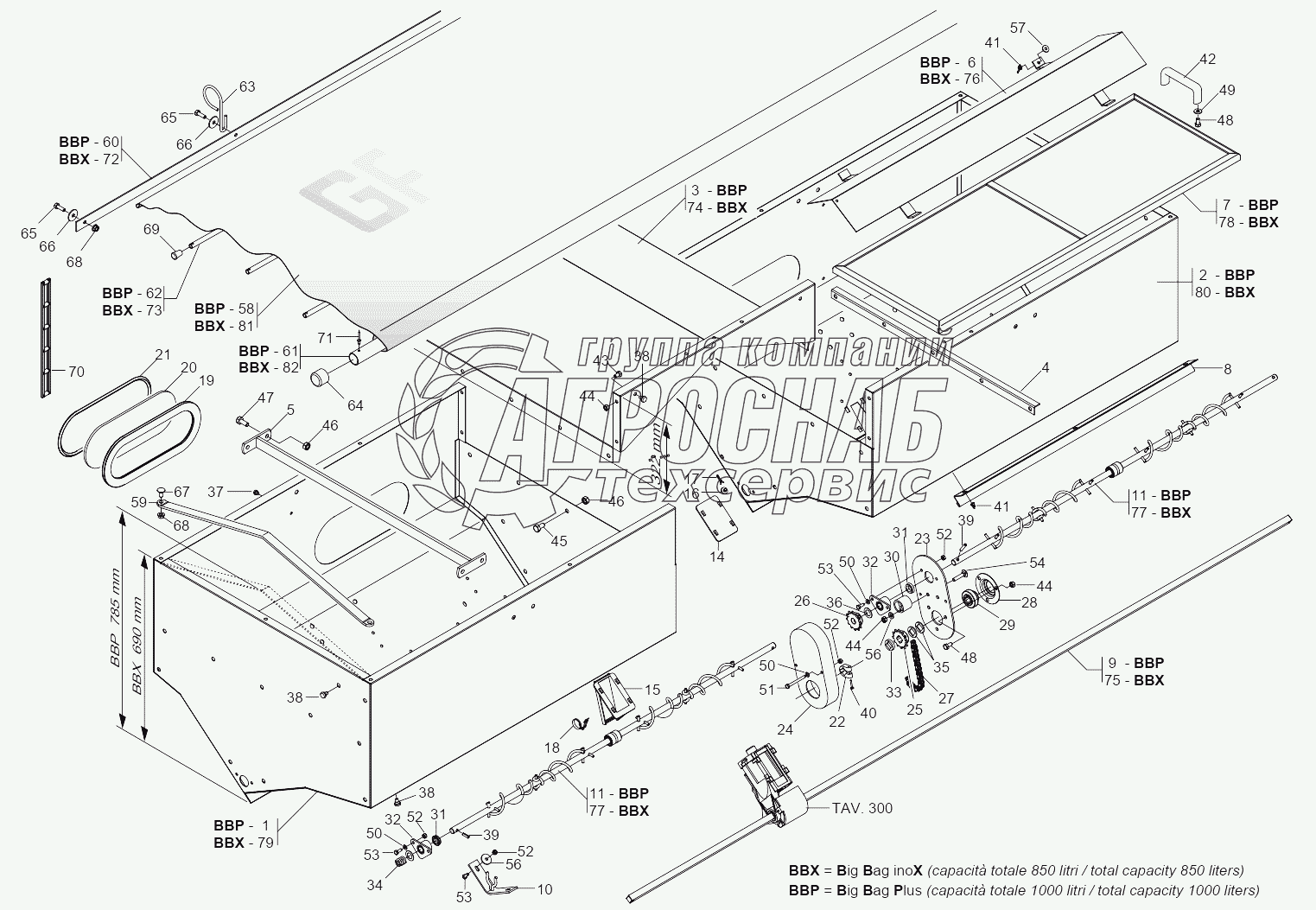 Каталог запасных частей к технике: Gaspardo Сеялка Gaspardo MTR. SPANDICONCIME TANK SINGLE