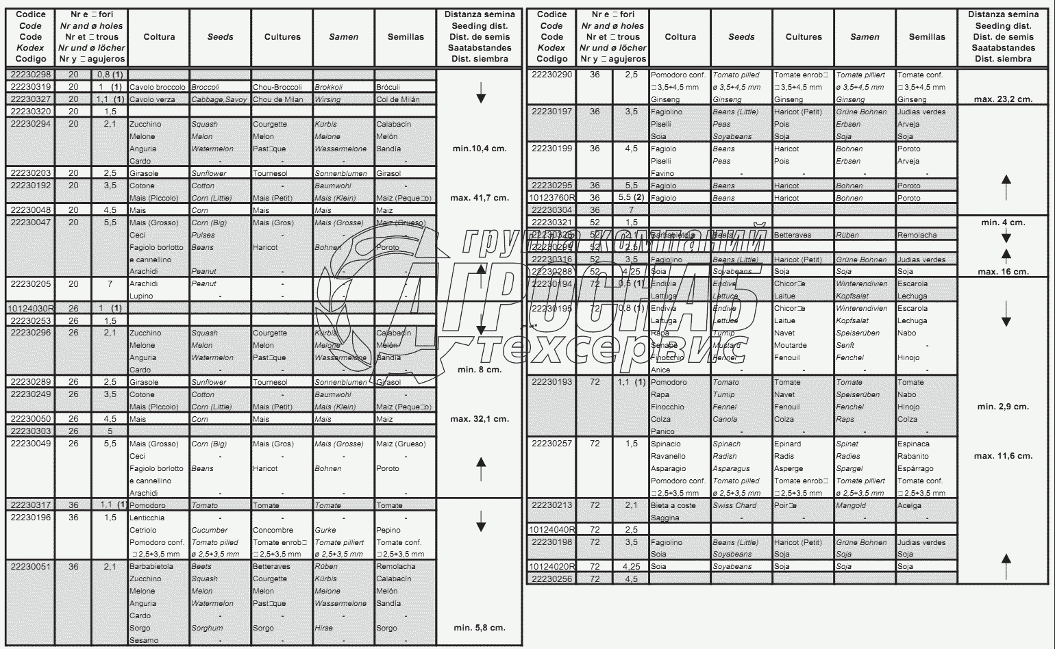 Каталог запасных частей к технике: Gaspardo Сеялка серии МТ. DISCHI DI SEMINA