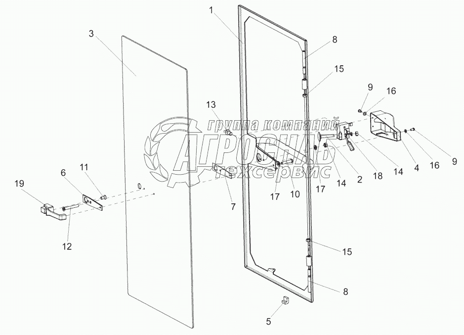 Каталог запасных частей к технике: Гомсельмаш КСК-600. Дверь КГС 0120400