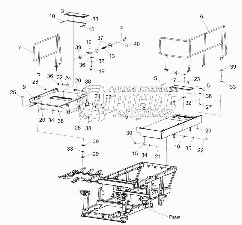 Каталог запасных частей к технике: Гомсельмаш КСК-600. Площадка входа КГС 0134000