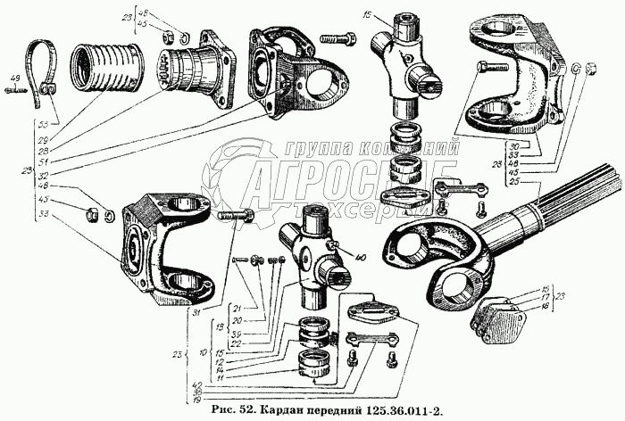 Каталог запасных частей к технике: ХТЗ Т-150К. Кардан передний 125.36.011-2
