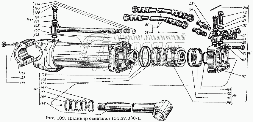 Каталог запасных частей к технике: ХТЗ Т-150К. Цилиндр основной 151.57.030-1