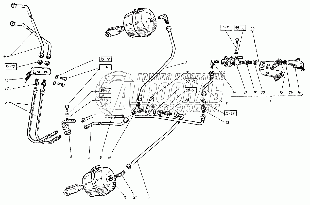 | 17 | 200-3506060-Б1 | Шланг к передним тормозным камерам гибкий в сборе | Под заказ | - | |||||