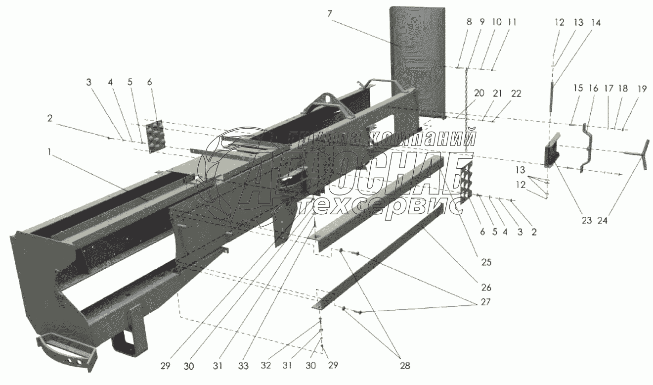 Каталог запасных частей к технике: Клевер ППТ-041 "Tukan". Камера прессующая (вид слева)