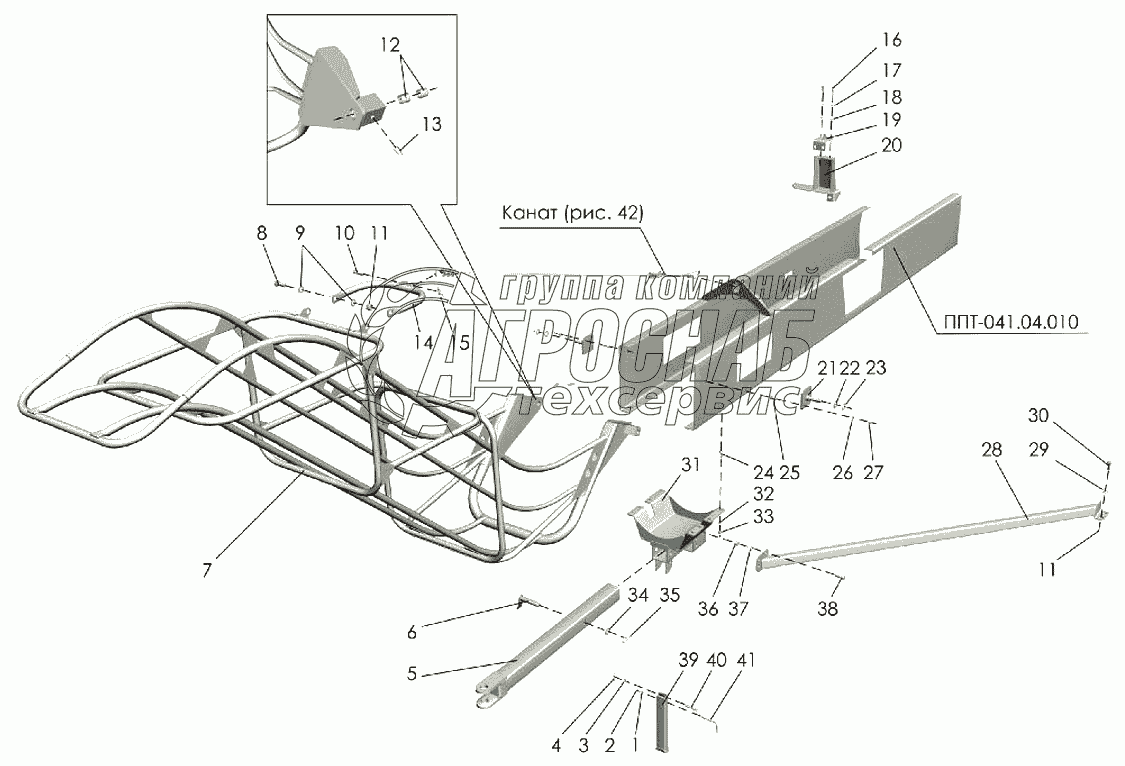 Каталог запасных частей к технике: Клевер ППТ-041 "Tukan". Выгрузное устройство