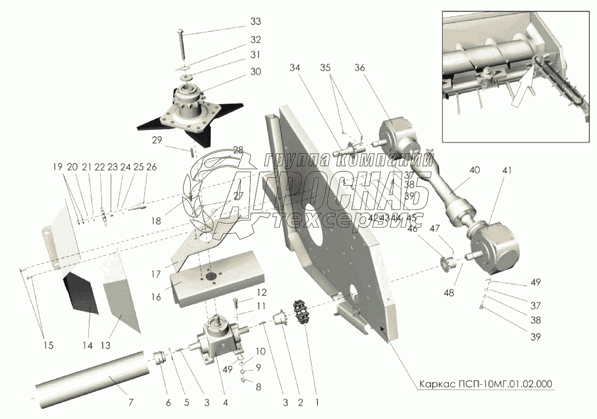 Каталог запасных частей к технике: Клевер ПСП-10МГ "Falcon". Корпус жатки (привод)