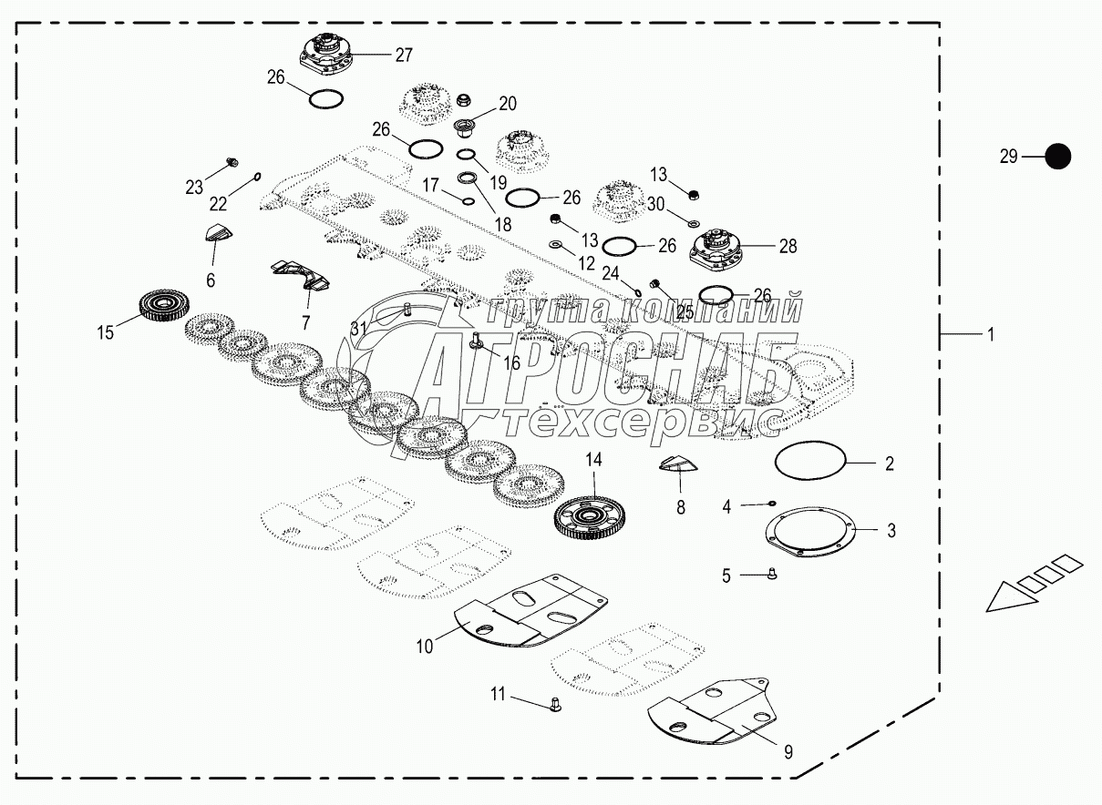 Каталог запасных частей к технике: KRONE ActiveMow R200. Cutter bar - SafeCut INSIDE