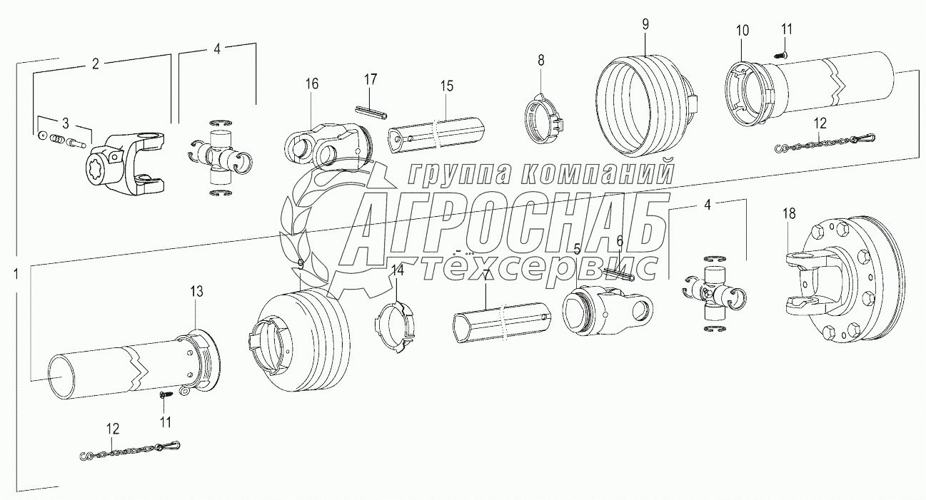 Каталог запасных частей к технике: KRONE ActiveMow R280. Pto drive shaft 951000 - 971000