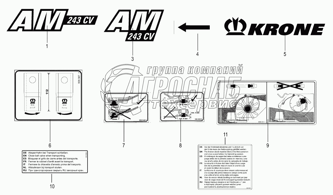 Каталог запасных частей к технике: KRONE AM 243CV. General information labels
