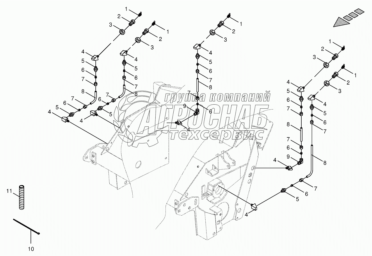 Каталог запасных частей к технике: KRONE BIG-M-400. Lubricating line - front-CRI