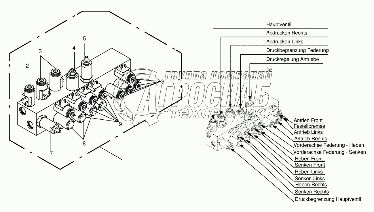 Каталог запасных частей к технике: KRONE BIG-M-400. Working hydraulics - Valve block