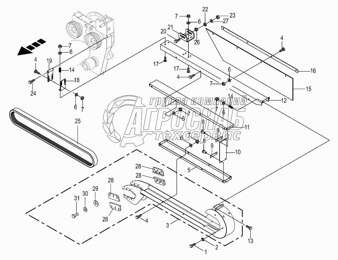 Каталог запасных частей к технике: KRONE BIG-M-420. Belt gurd located-left/right