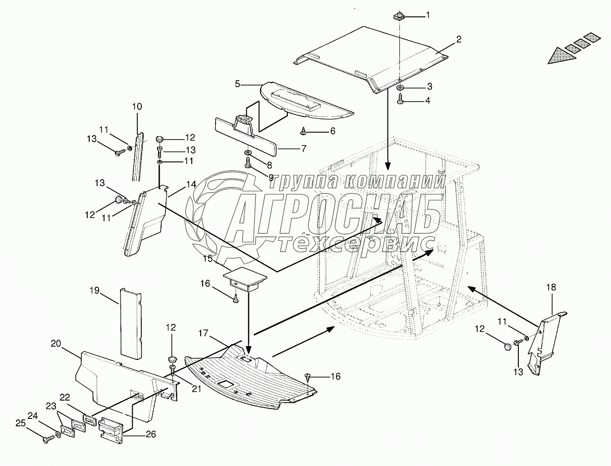 Каталог запасных частей к технике: KRONE BIG-M-I. Inner panels - cab roof
