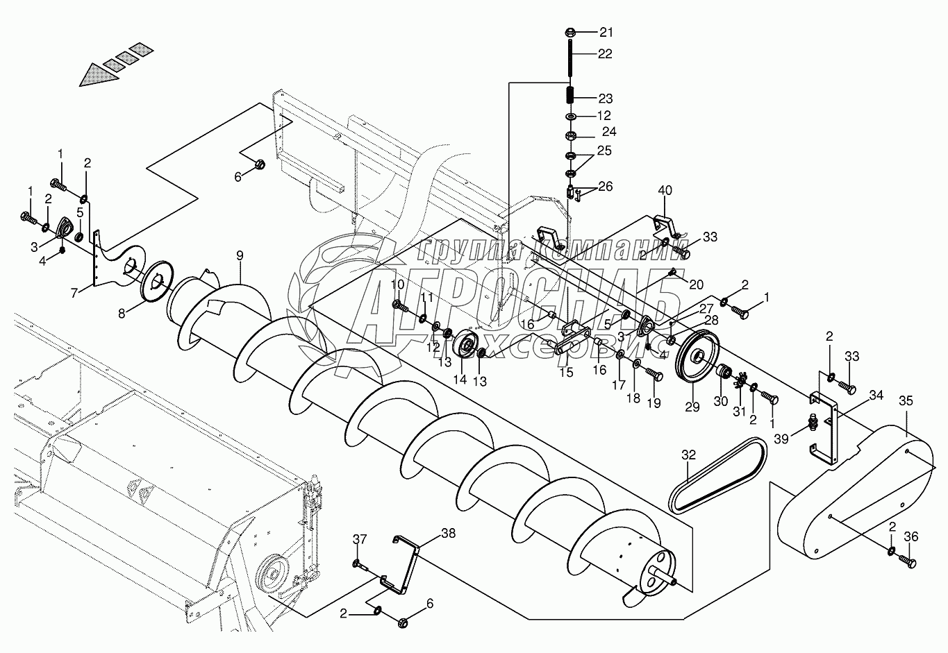 Каталог запасных частей к технике: KRONE BIG-M-II. Auger with gear -left/right