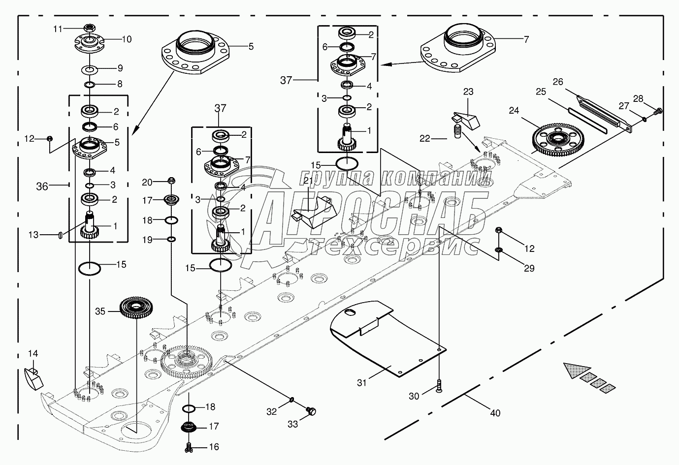 Каталог запасных частей к технике: KRONE BIG-M-II. Cutter bar with bearings