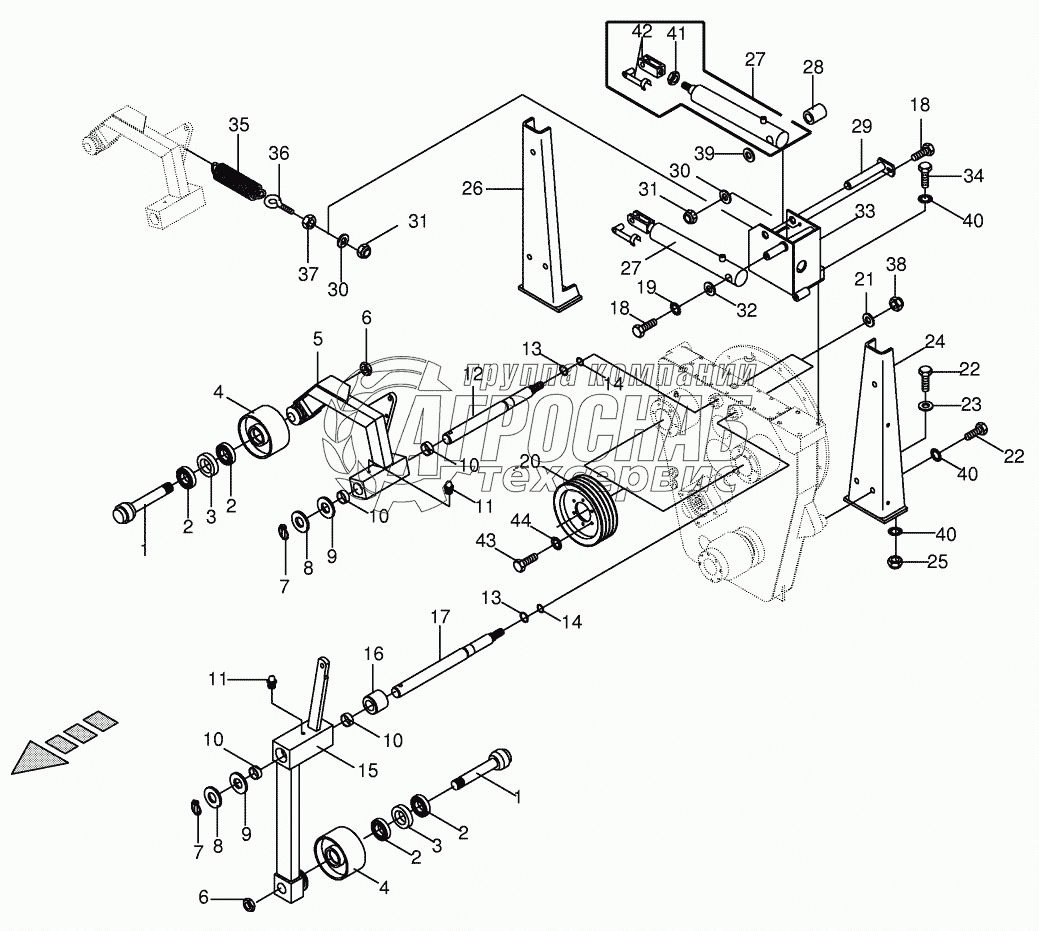 Каталог запасных частей к технике: KRONE BIG-M-II. Tensioning device on central gearbox