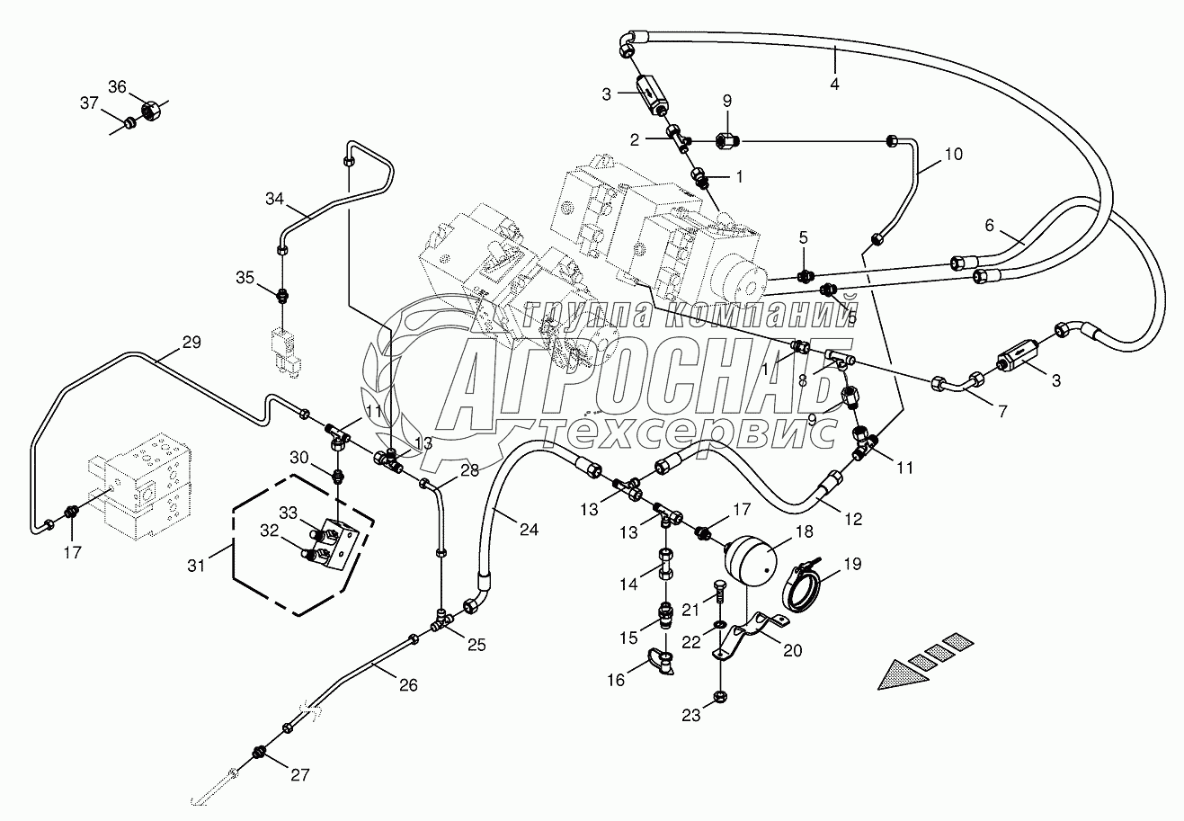 Каталог запасных частей к технике: KRONE BIG-X-1000. Charge pressure lines-back