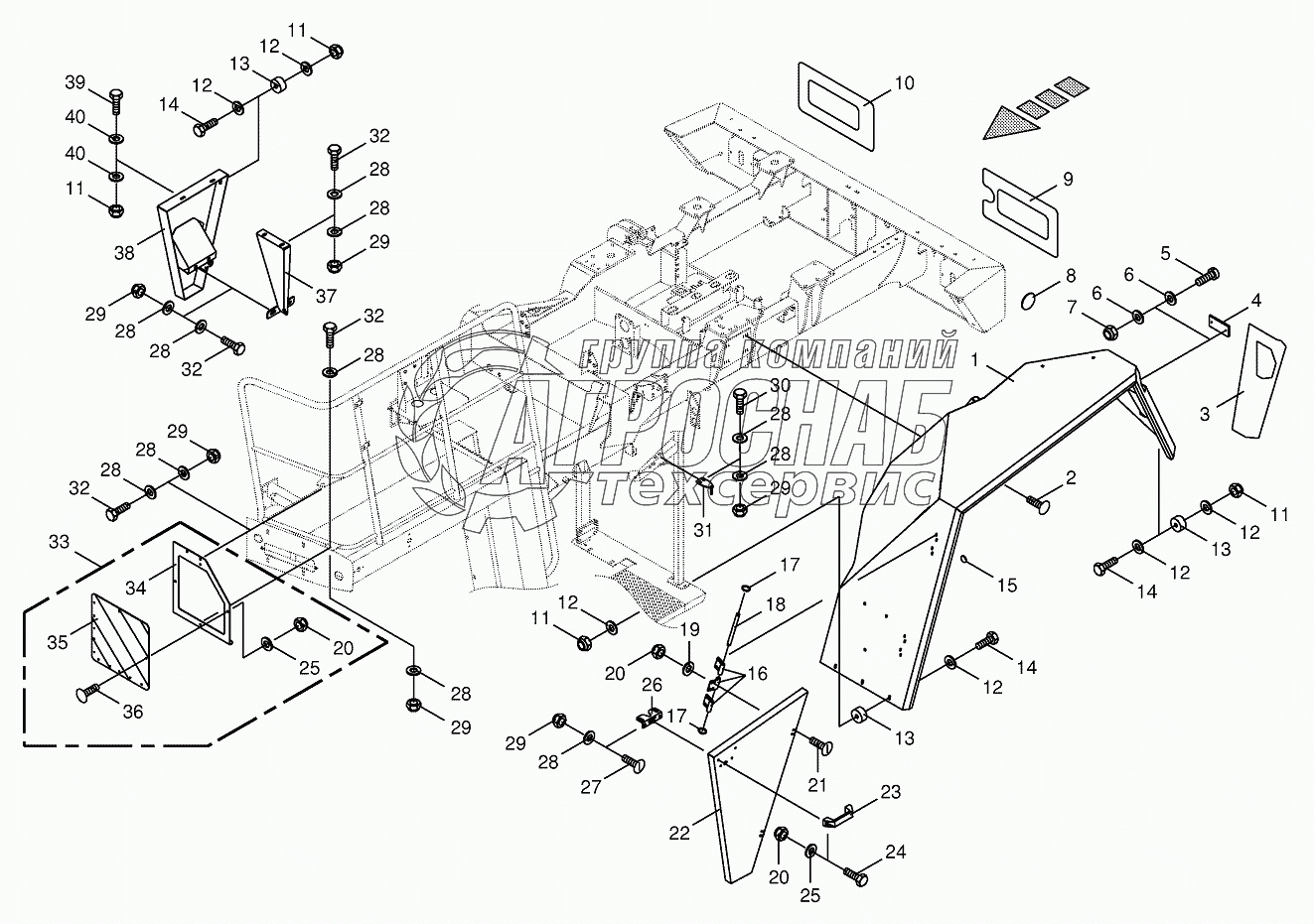 Каталог запасных частей к технике: KRONE BIG-X-1000. Mudguard/warning panel