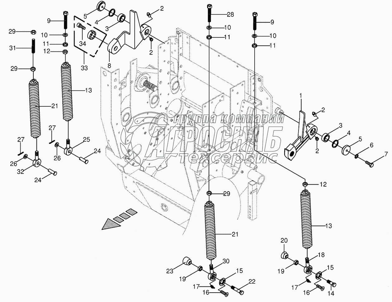 Каталог запасных частей к технике: KRONE BIG-X-500. Oscillating levers/Tension spring