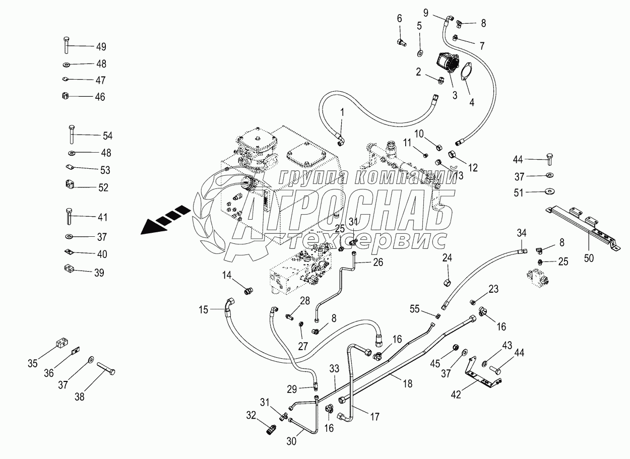 Каталог запасных частей к технике: KRONE BIG-X-580. Hydraulics - pressure lines -back