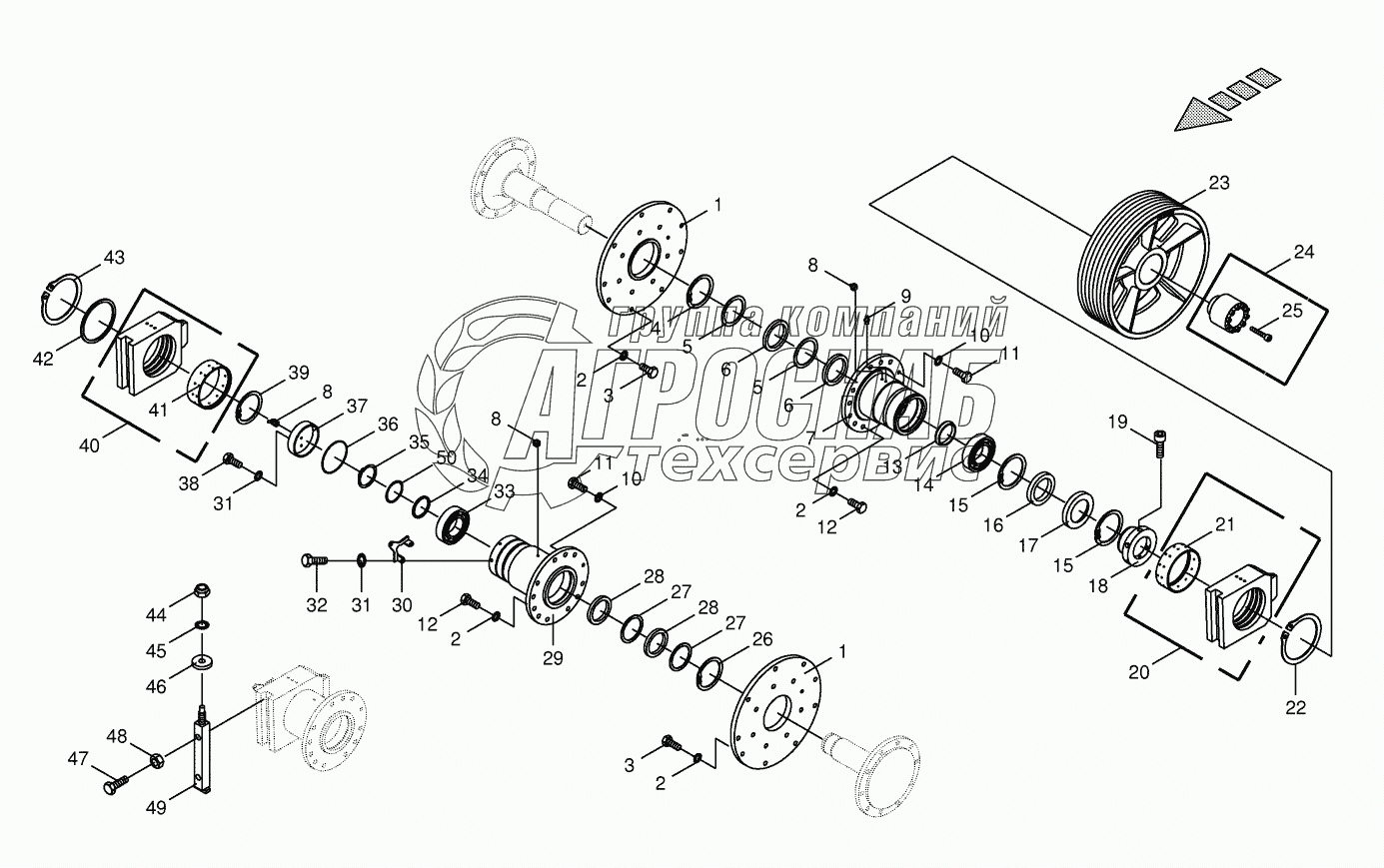 Каталог запасных частей к технике: KRONE BIG-X-600. Chopping drum bearing / counter bearing