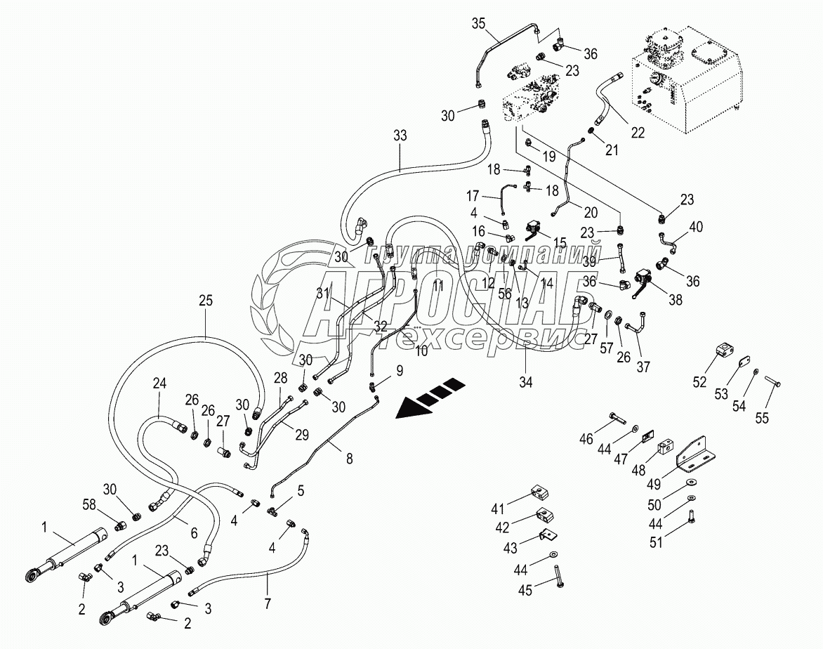 Каталог запасных частей к технике: KRONE BIG-X-630. Hydraulics - lift