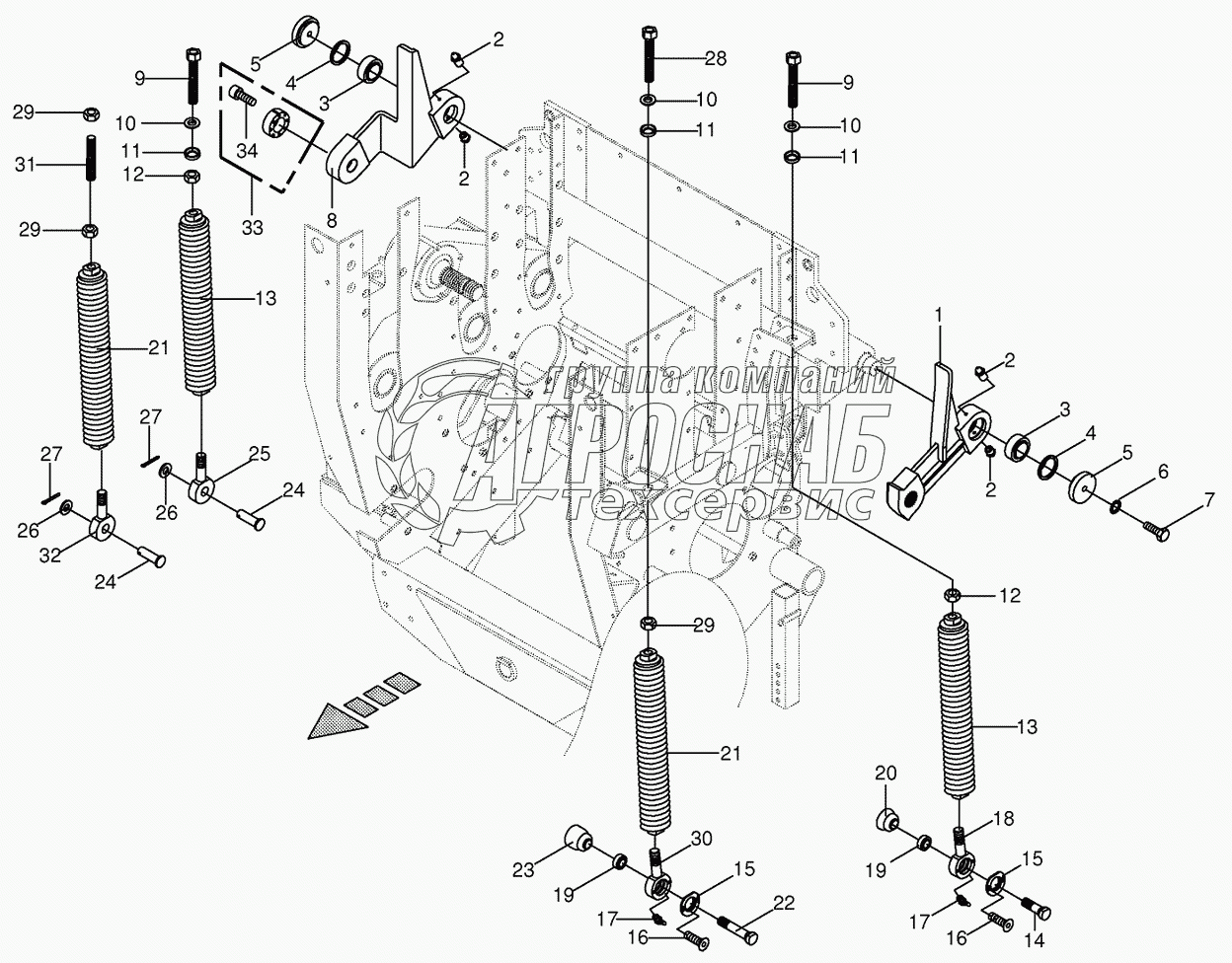 Каталог запасных частей к технике: KRONE BIG-X-650. Oscillating levers/Tension spring
