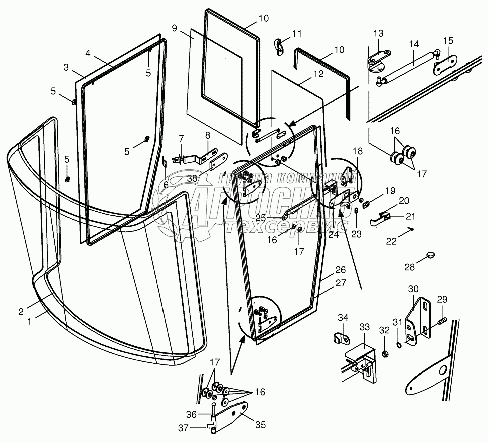 Каталог запасных частей к технике: KRONE BIG-X-650. Сab - glazlng