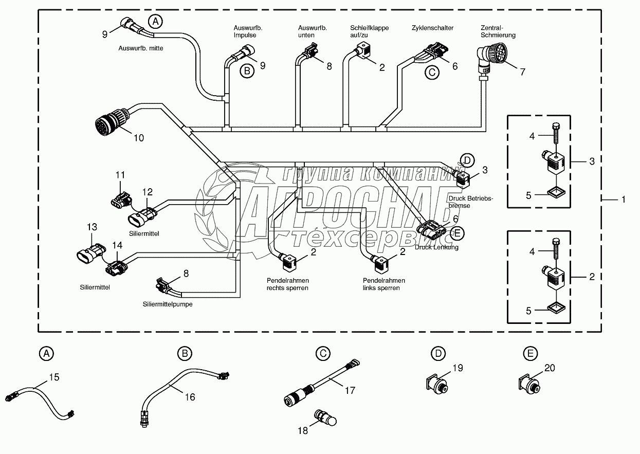 Каталог запасных частей к технике: KRONE BIG-X-650. Wiring harness-below the cabin
