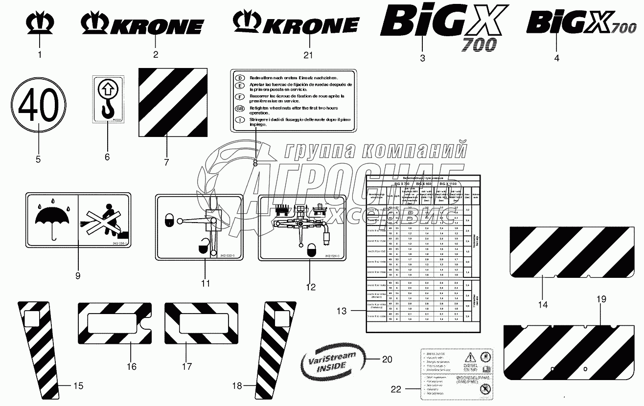 Каталог запасных частей к технике: KRONE BIG-X-700-1. General information labels