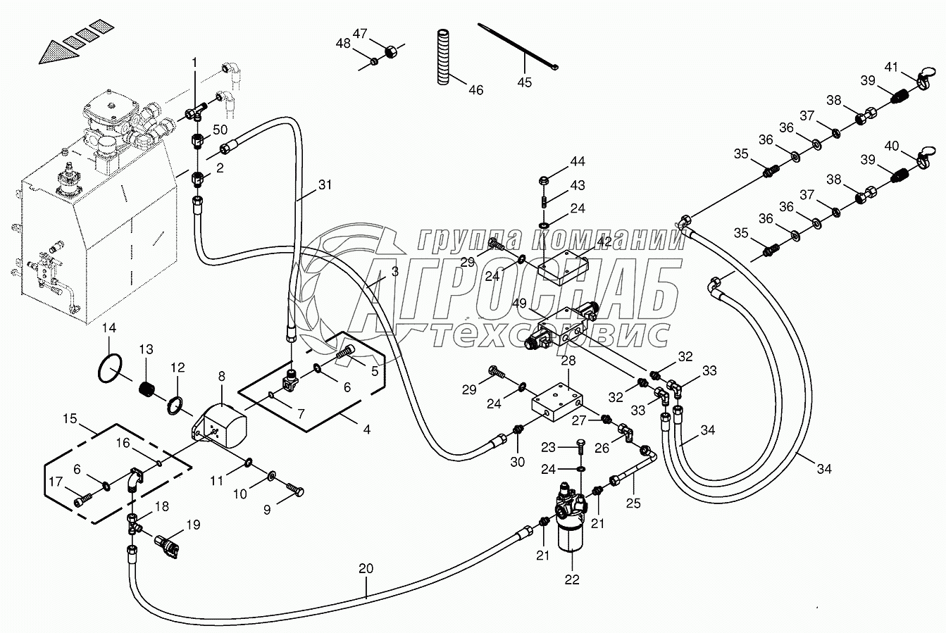 Каталог запасных частей к технике: KRONE BIG-X-700-1. Hydraulics-additive connection back
