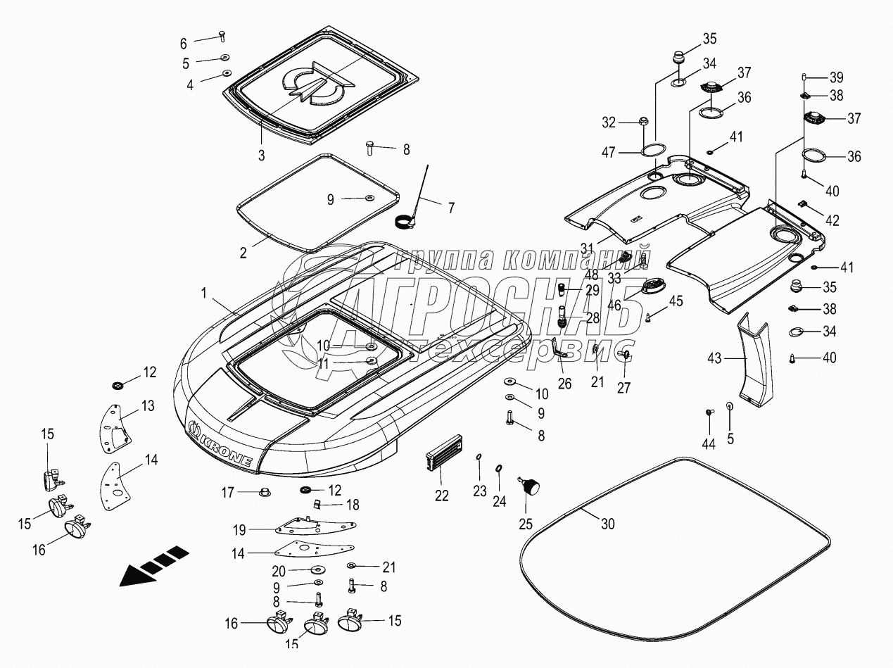 Каталог запасных частей к технике: KRONE BIG-X-700-1. Cab - roof 853001 - 879000