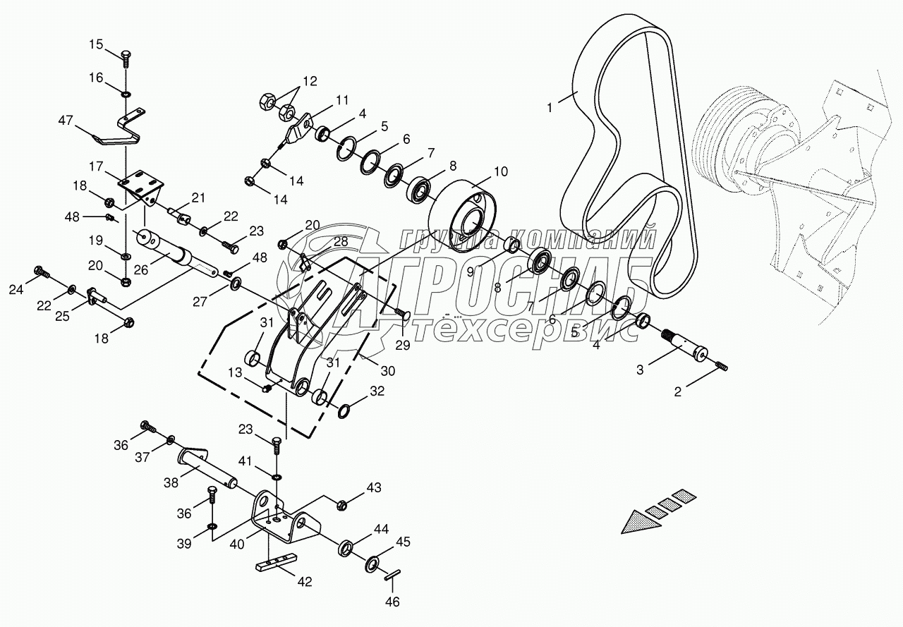 Каталог запасных частей к технике: KRONE BIG-X-700-1. Cracker drive / tensioning device