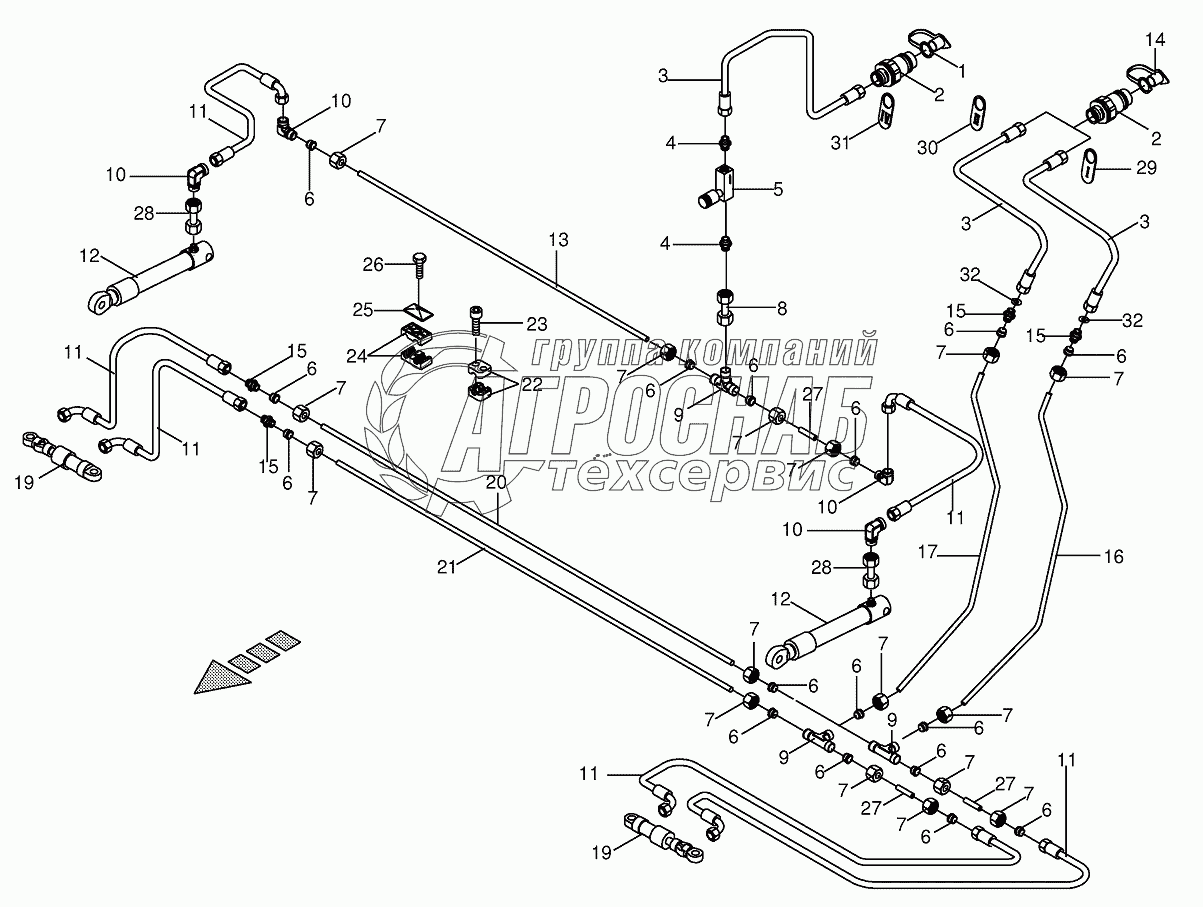 Каталог запасных частей к технике: KRONE EasyFlow 3801. Hydraulics cpl.-EF 3801